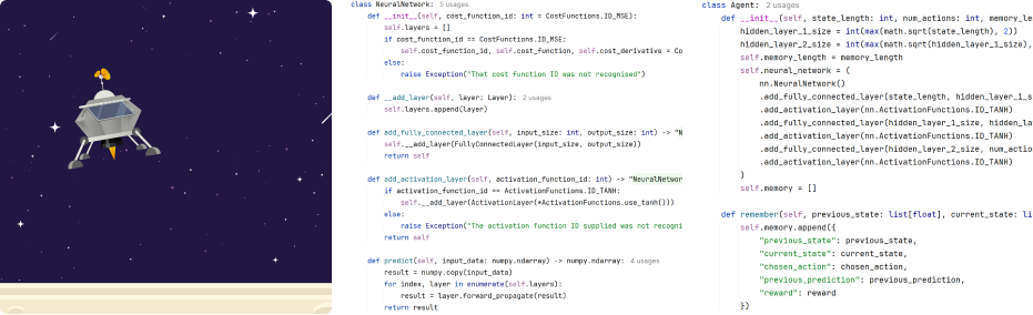 He brought everything together in a spacecraft landing simulation, creating an AI agent capable of teaching itself how to land with increasing precision. Jonathan built the physics, reward shaping, training process and evaluation tools himself, combining mathematical understanding with thoughtful experimentation.